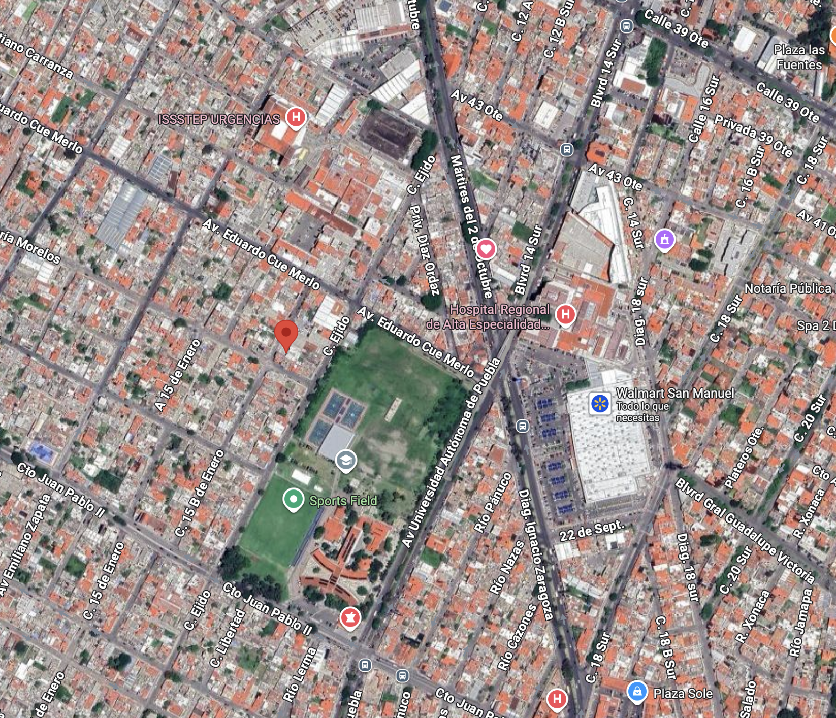 A dos cuadras de Walmart San Manuel e ISSSTEP